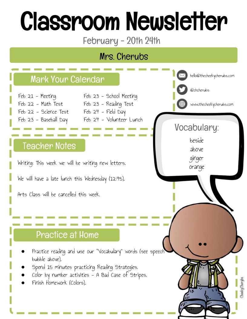 Here you’ll find a FREE Classroom Newsletter Template that you can personalize. There are 8 different colors with 4 different clipart. Use this template for your weekly, biweekly, or monthly parents newsletters.
